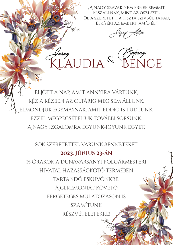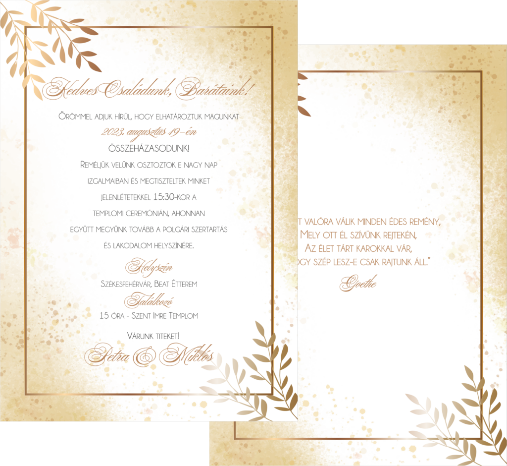 Az esküvői meghívód vagy kiegészítőd többfajta szövegezéssel is elkészülhet.